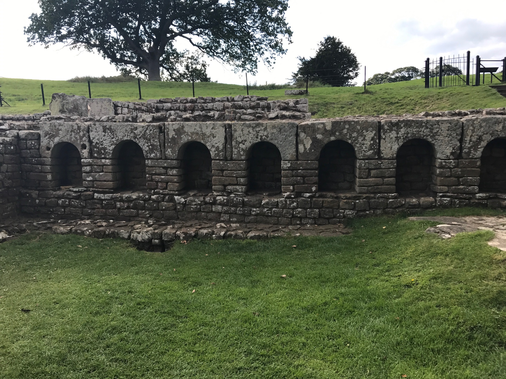 The star surviving remains are the garrison Baths, between the fort and the river. They are Hadrianic but heavily modified They famously have niches (possibly for clothes) in the large changing room, plus a surviving base of a window, stone channels with lead seals still remaining, and a latrine on the riverside. These bath would have been a welcome luxury for the elite soldiers stationed at Chesters.